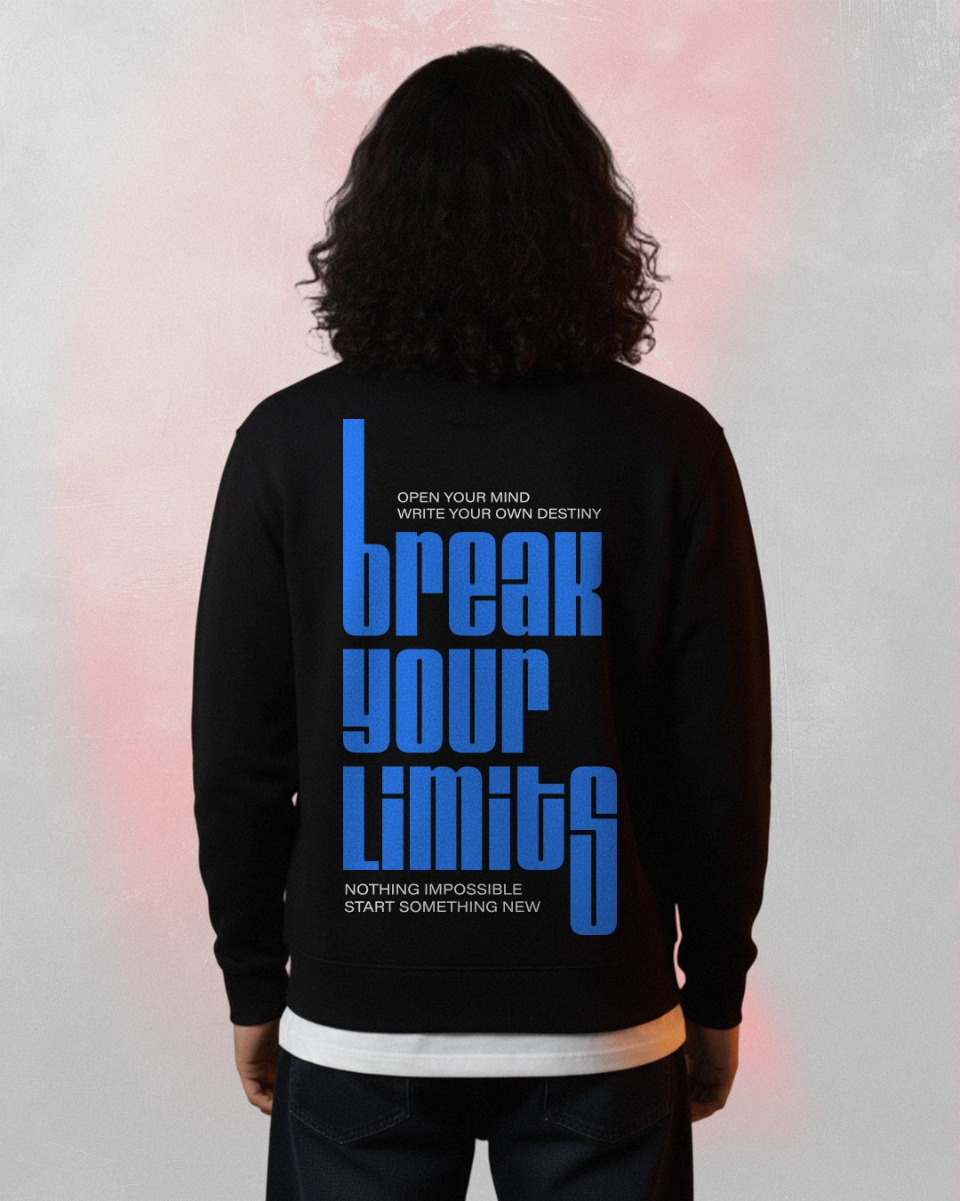 Challenge your boundaries in the Break Your Limits sweatshirt. Designed in bold black with a powerful motivational back print, this piece keeps you inspired while delivering everyday comfort. Whether you’re training, studying, or leveling up in life, it’s the perfect sweatshirt to keep style on point.